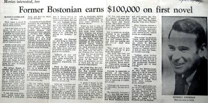 “Already a best seller and a Literary Guild recommendation for March, ‘It Happened in Boston?’ is a first novel—without a single naughty four-letter word—that has been purchased for $100,000 by a paperback reprint house, will be translated into Italian for Fall publication in Rome, and is being bid upon by several film producers. […] ‘When I was a kid in Morris High School—I graduated in 1942—I used to sell “Who’s Who in Baseball” for 25 cents a copy at Yankee Stadium and the Polo Grounds. I also had a job with a messenger service out of Rockefeller Center; I delivered manuscripts almost every afternoon to Random House.’ While he had no idea, of course, that very publishing firm would be accepting his first novel three decades later…” |