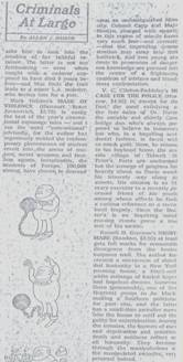 “Criminals at Large” NY Times Book Review © July 12 1970 Allen J. Hubin |