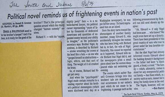 “Does a politician need to be his brother’s keeper? And if he does, is it really for the good of the brother? […] The events which author Russell Greenan brings into this brothers’ tale are reminders of real occurrences in our nation’s past which do not cease to be frightening. A passage such as the following pronouncement by Richard can still send shivers up the spine: “Ah, Edward—if only Nigel had been sane… who knows? We might even have set up a dynasty. There have been presidents of this great country of ours who rose to power under far less favorable circumstances.” |